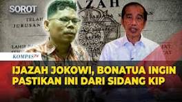 Bonatua Ingin Pastikan Ijazah Jokowi Tidak Termasuk Informasi Publik yang Ditutup-tutupi Mempersoalkan ijazah Pak Jokowi asli atau palsu. Bukan itu ranahnya ya. Itu di ranah hukum lain yang sekarang kita hormati sedang berjalan gitu.